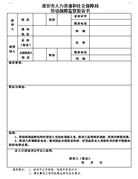 2、投诉人书写确有困难的,可由投诉人口头投诉,劳动保障监察员进行笔录,并由投诉人确认无误后签名或盖章。
