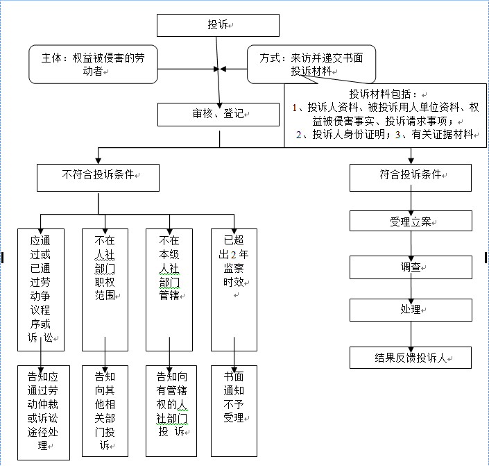 3、属于劳动保障监察职权范围并由受理投诉的人力资源和社会保障行政部门管辖。